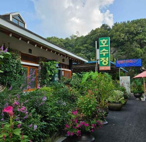 호수정은 사선대 관광지 내에 위치한 넓고 쾌적한 식당입니다. 규모가 큰 식당과 야외 좌석, 그리고 파라솔까지 마련되어 있어 단체 모임이나 행사를 위한 장소로도 인기가 많습니다.