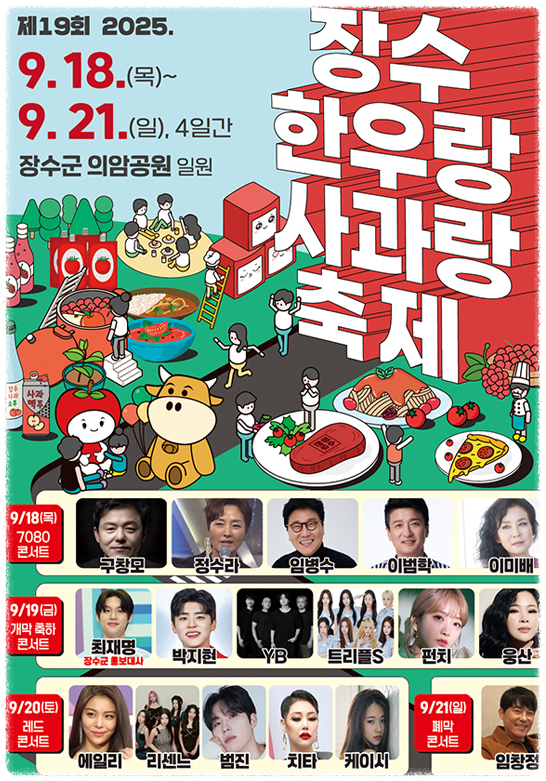 장수 한우랑 사과랑 축제가 2025년에도 개최를 앞두고 있습니다. 이번 글에서는 장수 한우랑 사과랑 축제 일정부터 주차 먹거리 초대가수등 다양한 정보를 정리해 소개합니다.