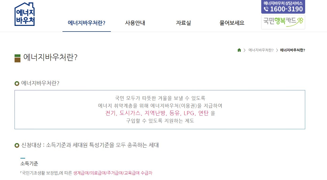 에너지비용은 가구의 생활비 중 큰 비중을 차지하기 때문에 에너지바우처는 취약계층의 에너지복지 증진에 기여하며 전기요금을 절약하는 하나의 팁이될 수 있습니다. 하절기와 동절기로 구별되며 전기, 도시가스, 지역난방 중 택1을 선택할 수 있습니다.