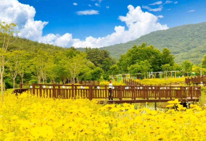 발아래 펼쳐지는 섬진강의 굽이치는 물줄기와 주변의 울창한 산림이 어우러져 그림 같은 풍경을 선사합니다. 특히 다리 중간에는 투명한 강화유리 바닥 구간이 있어 마치 하늘 위를 걷는 듯한 아찔한 스릴을 느낄 수 있습니다. 출렁다리를 건너는 동안 시원하게 불어오는 바람과 탁 트인 전망은 일상의 스트레스를 잊게 해줄 것입니다.