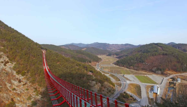아찔한 스릴과 아름다운 풍경을 동시에 즐기고 싶다면 순창 채계산 출렁다리를 추천합니다! 국내 최장 무주탑 산악 현수교인 이곳은 길이 270m, 높이 최고 90m에 달하는 웅장한 규모를 자랑합니다.
