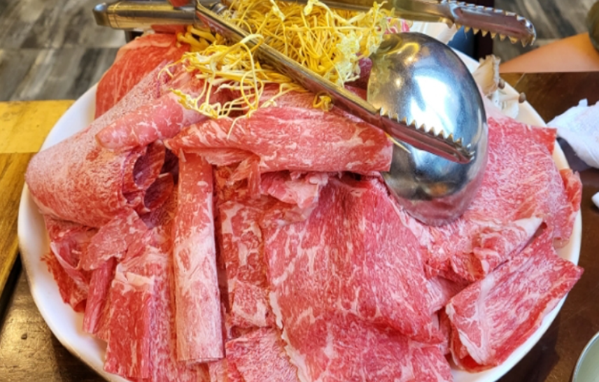 메인 메뉴인 버섯 샤부샤부는 황금 팽이버섯, 팽이버섯, 노루 궁둥이 버섯, 새송이버섯, 표고버섯 등 다양한 버섯이 푸짐하게 들어가 건강하고 깊은 맛을 선사합니다.