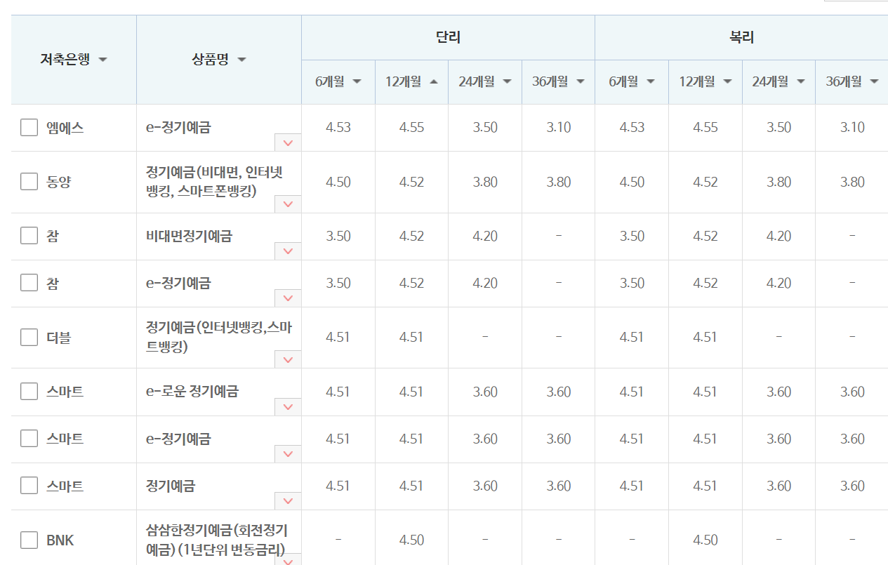 저축은행 정기예금 중에서도 특히 금리가 높은 곳으로 HB저축은행, 대백저축은행, 유니온저축은행, 참저축은행, 키움YES저축은행와 같은 곳들이 있었습니다. 제2금융권 정기예금이율높은곳 또한 1금융권과 마찬가지로 비교 사이트를 통하여 손쉽게 조회해 보실 수 있습니다.