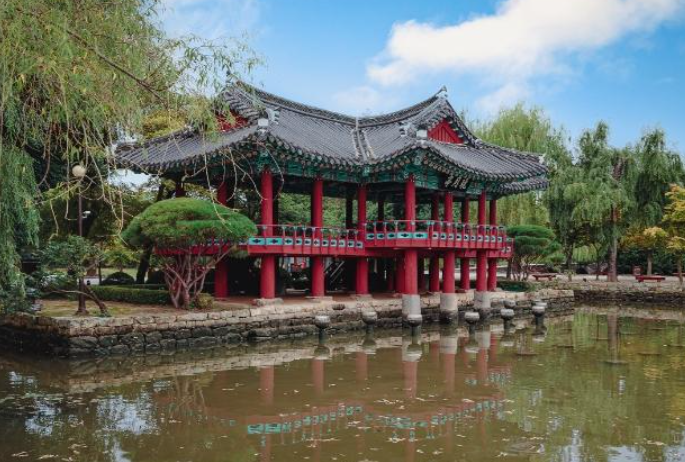광한루원은 전라북도 남원시에 위치한 한국의 대표적인 문화유산으로, 광한루는 조선시대에 지어진 누각으로 그 정원은 한국 전통 정원의 아름다움을 완벽하게 구현하고 있습니다.