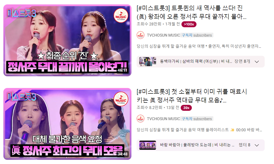 2. 정서주 유튜브 미스트롯3 평가