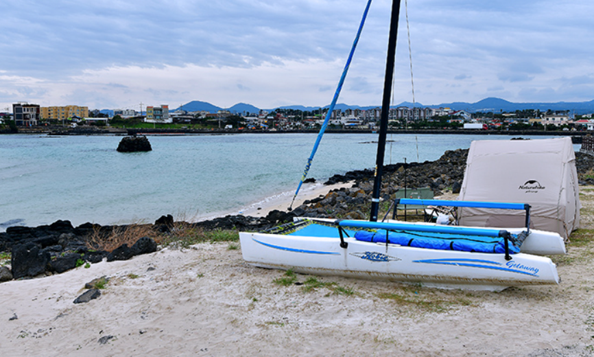 해변 근처에는 캠핑장이 있어 캠핑을 즐기는 것도 좋습니다. 밤에는 쏟아지는 별을 보며 낭만적인 시간을 보낼 수 있습니다. 제주특별자치도 제주시 조천읍 신흥리 1322에 위치합니다.