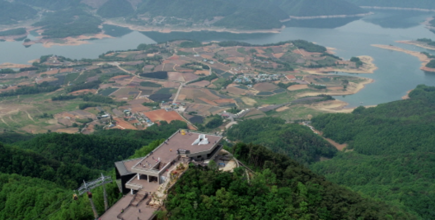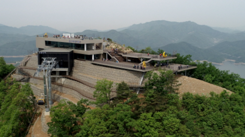 케이블카에서 내린 후 비봉산 정상 전망대에 오르면 360도 파노라마 뷰로 청풍호와 주변 경관을 감상할 수 있습니다. 전망대에는 카페와 포토존 등 다양한 편의시설도 마련되어 있습니다.