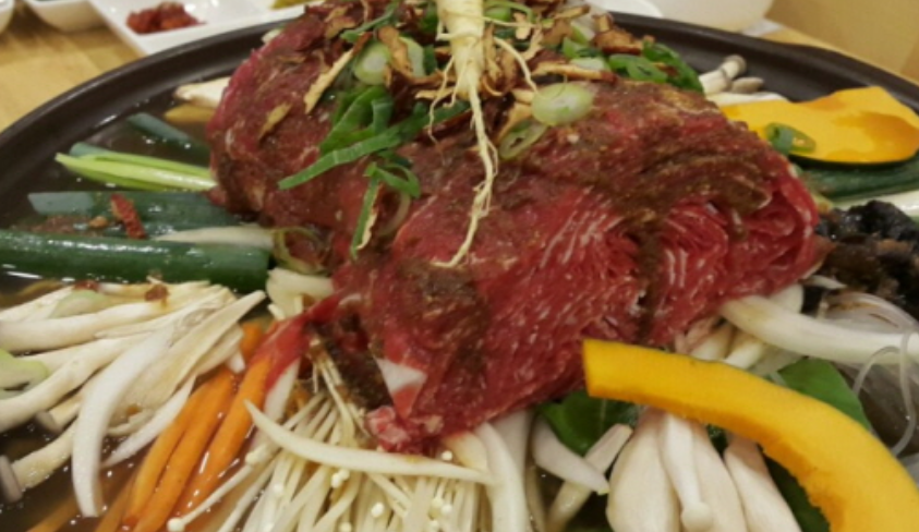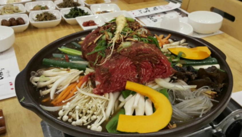 황기를 비롯한 16가지 약초와 버섯, 견과류, 그리고 국내산 1등급 한우 수육을 함께 끓여 먹는 음식으로, 맛과 영양의 조화가 훌륭합니다.