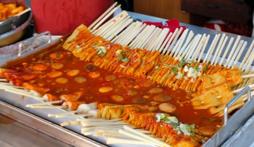 두 겹의 얇은 어묵에 떡볶이 양념이 듬뿍 배어 있어, 한 입 베어 물면 달콤하면서도 매콤한 맛이 입안 가득 퍼집니다. 가격도 매우 저렴합니다.