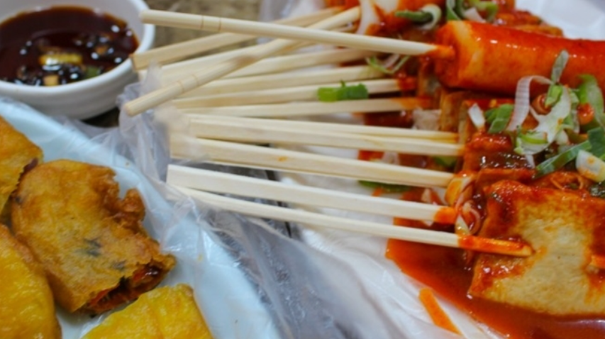 나무 꼬치에 꽂힌 어묵 3개가 단돈 천 원! 학교 앞 분식집에서 먹던 추억의 맛을 떠올리게 합니다. 어묵 외에도 쫄깃한 가래떡 꼬치도 함께 판매하고 있어, 다양한 식감을 즐길 수 있습니다.