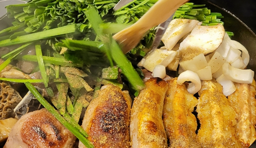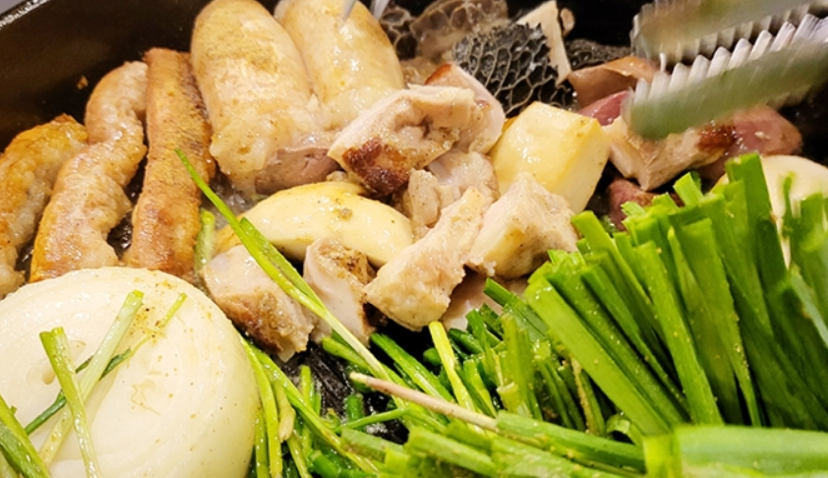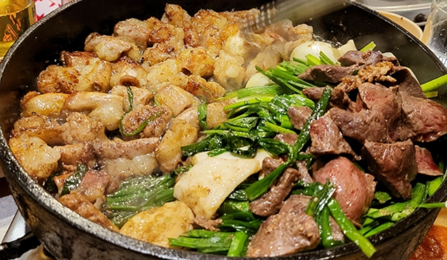 특히 모든 부위가 함께 나오는 생모듬은 다채로운 맛을 한 번에 경험할 수 있어 인기 메뉴입니다. 주문하면 둥그런 무쇠판에 곱창과 함께 부추, 감자, 팽이버섯, 새송이버섯, 양파가 함께 나옵니다.