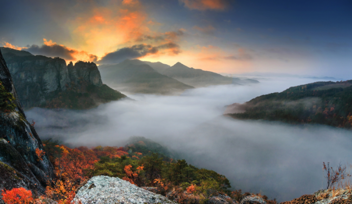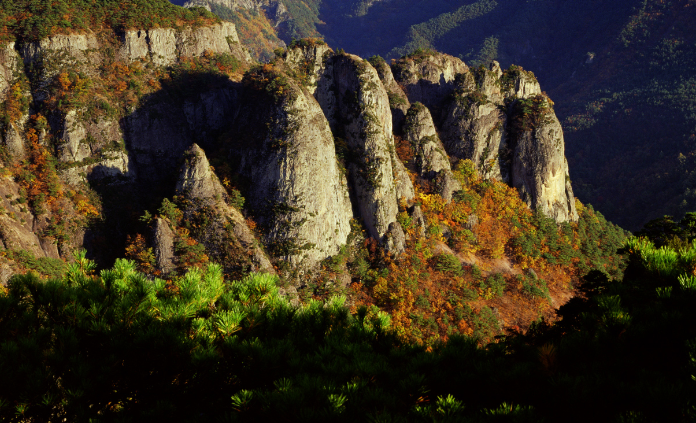 또한 계곡과 산세등 상당히 독특한 구조를 취한 산중으로 유네스코 세계지질공원에 등재된 곳이기도 합니다. 산이 그렇게 높은 편은 아니나 주변이 많은 암벽으로 둘러 쌓여져 있습니다.
