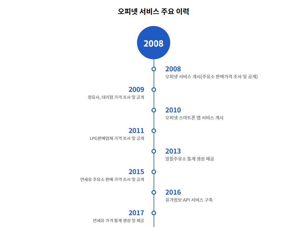 대표적인 주유소 비교사이트로는 오피넷이라고 하는 것이 있습니다. 오피넷은 2008년부터 서비스를 시작한 곳이며 석유사업자가 보고한 자료를 바탕으로 유가정보를 제공하고 현재는 스마트폰 어플리케이션까지도 지원을 하고 있습니다. 만개가 넘는 전국의 주유소와 충전소의 가격을 실시간으로 제공해 주는 사이트입니다.