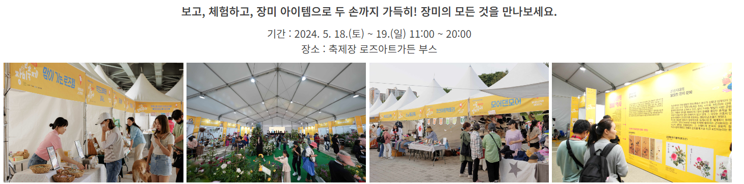 5월 18일(토)부터 5월 25일(토)까지는 계속해서 다양한 행사들이 이어집니다. 로즈버스킹, 리사이클 로즈 포토존에서 아름다운 포토존에서 추억을 남기세요.