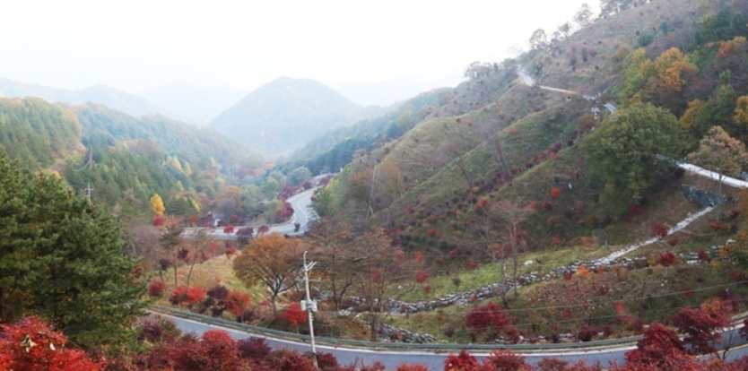 지안재는 '지리산 넘버원'이라고 불리는 곳으로, S자 모양의 굽이굽이 도로가 인상적인 곳입니다. 가을에는 도로 양옆으로 펼쳐진 단풍을 감상하며 드라이브를 즐길 수 있으며, 특히 밤에는 조명이 켜져 야경과 단풍을 함께 즐길 수 있습니다.