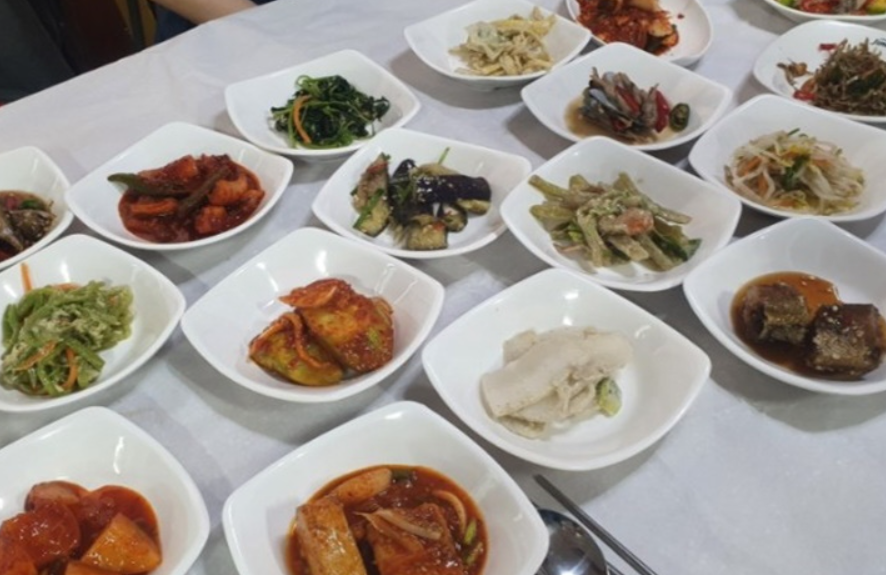 용천식당의 첫인상은 바로 푸짐한 밑반찬입니다. 기본 미역국을 포함해 무려 13가지의 반찬이 나오는데, 하나하나 정성이 느껴지는 맛입니다.