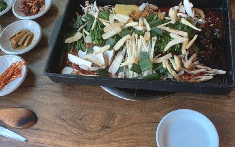 든든한 한 끼 식사를 원한다면 흑돼지 주물럭과 된장찌개도 좋은 선택입니다. 매콤한 양념에 볶아 먹는 흑돼지 주물럭은 밥도둑이 따로 없답니다.