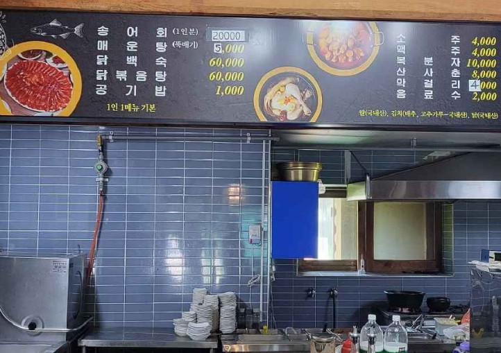 송어회뿐만 아니라 뜨끈하고 얼큰한 시래기 매운탕도 놓칠 수 없는 메뉴입니다. 푸짐한 시래기와 송어가 어우러져 깊은 맛을 내는 매운탕은 쌀쌀한 날씨에 몸을 따뜻하게 녹여줍니다. 닭백숙, 닭볶음탕 등 다양한 메뉴도 준비되어 있으니 취향에 따라 골라 즐길 수 있습니다.