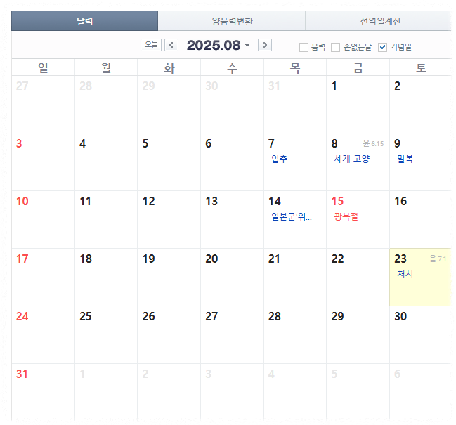 여름의 무더위를 지나 마침내 맞이하는 서늘한 바람은 그 자체로 계절의 교차를 알려주는 신호이며, 농경 사회에서는 풍년을 앞둔 희망의 시기로 자리매김하였습니다. 오늘날에도 처서는 단순한 절기가 아니라 일상 속에서 계절의 변화를 실감하고 생활의 리듬을 새롭게 조율하는 데 중요한 의미를 가진 절기로 인식되고 있습니다.