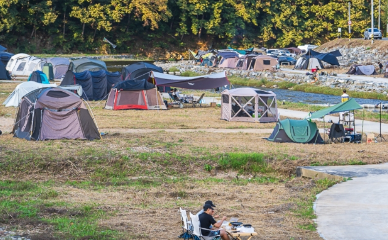덕암교 노지 캠핑은 무료로 이용할 수 있으며 넓은 공간 덕분에 다른 캠핑족과의 간섭 없이 여유롭게 캠핑을 즐길 수 있습니다.