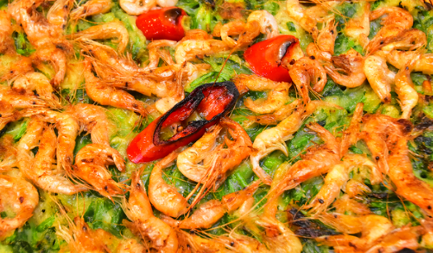 또 다른 인기 메뉴인 민물새우전은 푸짐한 민물새우를 사용하여 바삭하고 고소한 맛이 일품입니다.