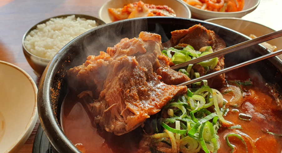 이곳의 대표 메뉴는 구수한 사골 육수에 푸짐한 뼈다귀가 어우러진 뼈다귀해장국입니다. 뼈다귀에 붙은 살점을 발라먹는 재미와 진한 국물 맛이 일품입니다.