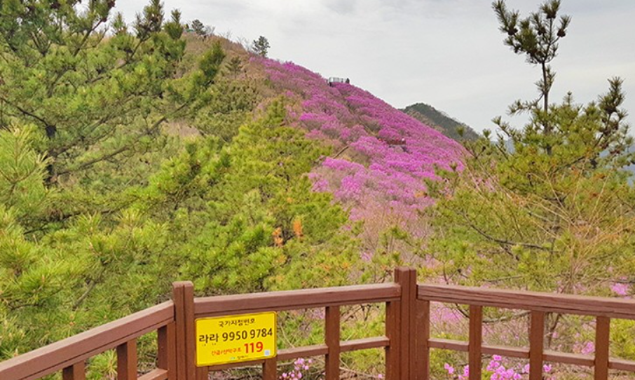 봄에는 진달래와 철쭉꽃 그리고 산이 붉게 물들면서 장관을 연출하고 있습니다. 진달래의 경우 정상인 용지봉 주변으로 군락을 이루며 피어납니다.