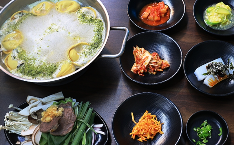 만두전골은 한번 끓어오르면 별도로 제공되는 버섯과 야채를 넣어 익혀 먹으면 됩니다. 남은 전골 국물에 야채죽을 추가하여 먹으면 더욱 든든하게 즐길 수 있습니다.