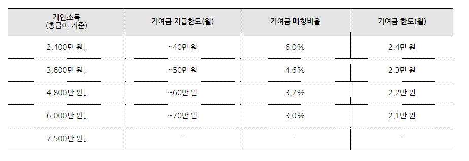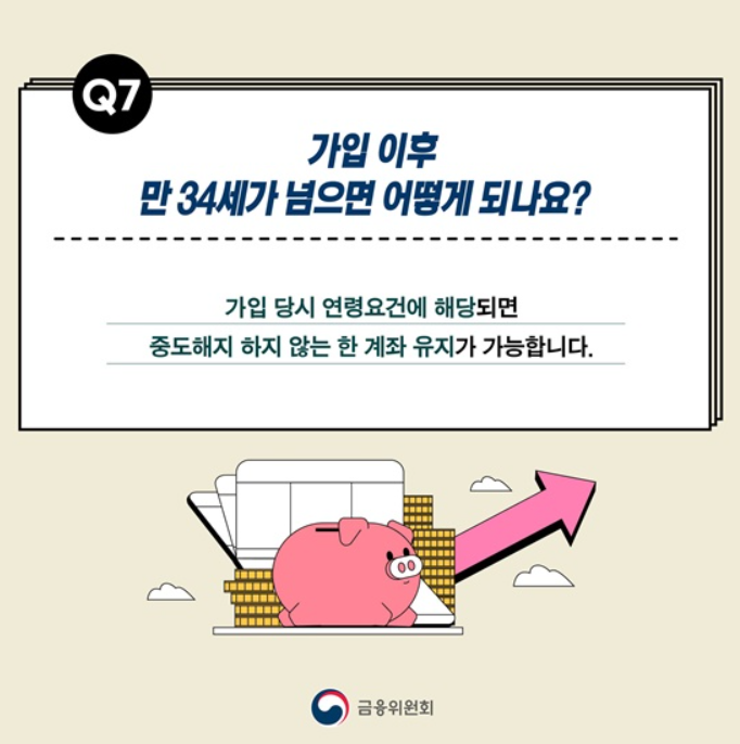 (단 개인소득 6,000~7,500만 원 중위 소득의 180% 이하 동시 만족하는 청년도 가능하나 정부 기여금은 제외되며 이자소득 비과세 혜택만 부여)