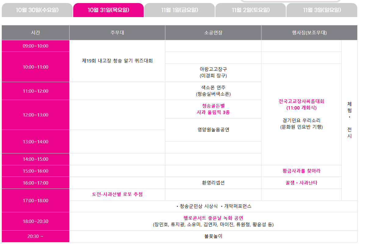 2. 제19회 청송사과축제 일정 초대가수 2024