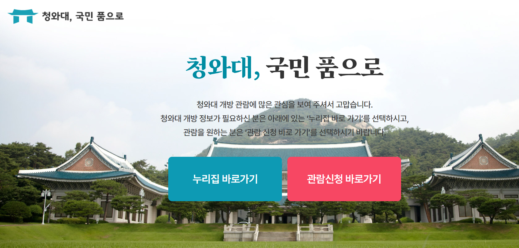청와대 관람의 경우 예약없이 방문할 수가 없어서 사전에 예약이 필수적으로 진행되고 있습니다. 다만 청와대 관람 비용은 없으니 걱정 하지 않으셔도 됩니다. 신청방법은 청와대 홈페이지(PC)를 통해서만 가능합니다.