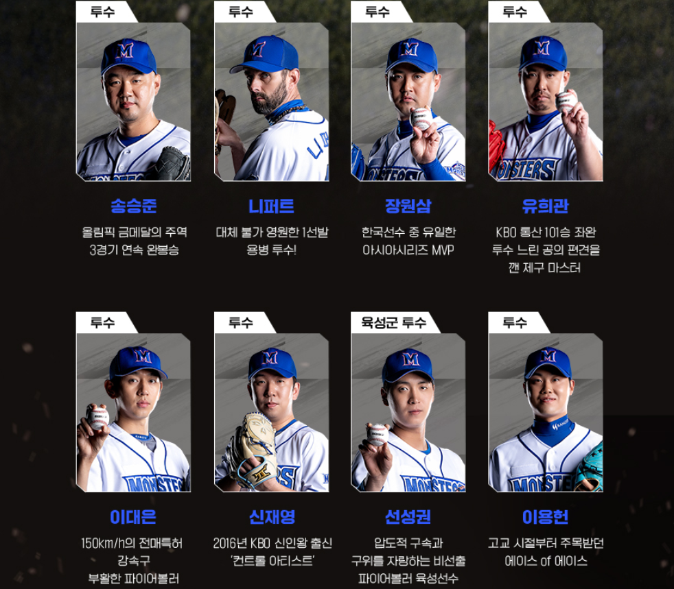 새로 합류한 멤버들과 기존 몬스터즈 멤버들이 서로 만나 인사를 나누는 장면도 보였습니다. 먼저 투수 조에는 KBO리그 통산 102승을 기록한 전설의 더스틴 니퍼트가 처음으로 등장했습니다.
