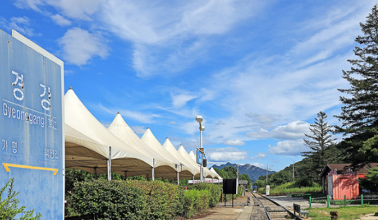 경강역 코스는 강변과 산길을 따라 달리며 다채로운 풍경을 감상할 수 있는 코스입니다. 레일바이크를 즐긴 후에는 강촌유원지에서 다양한 놀이기구와 수상 레저를 즐기거나, 구곡폭포에서 시원한 물줄기를 감상하는 것도 좋습니다. 춘천의 대표 관광지인 남이섬도 가까운 거리에 있어 함께 방문하기에 좋습니다.