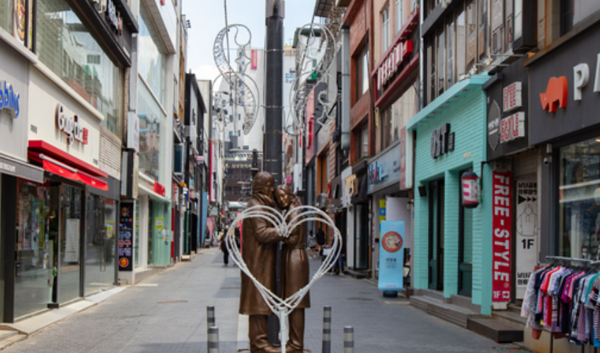 거리 곳곳에 조형물과 예술 작품들이 설치되어 있어 볼거리를 제공합니다. 특히 '겨울연가' 촬영지로 유명한 곳으로, 드라마 속 주인공들의 조형물과 함께 사진을 찍을 수 있습니다.