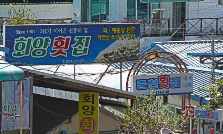초기에 장사를 시작한 사람들이 대부분 실향민이었기에 지금도 간판 상호에 이북 지명을 쓰는 가게가 많이 남아 있습니다. 1990년대까지만 해도 민물고기 음식점이 20여 곳에 달했지만, 지금은 10여 곳만 운영되고 있습니다.