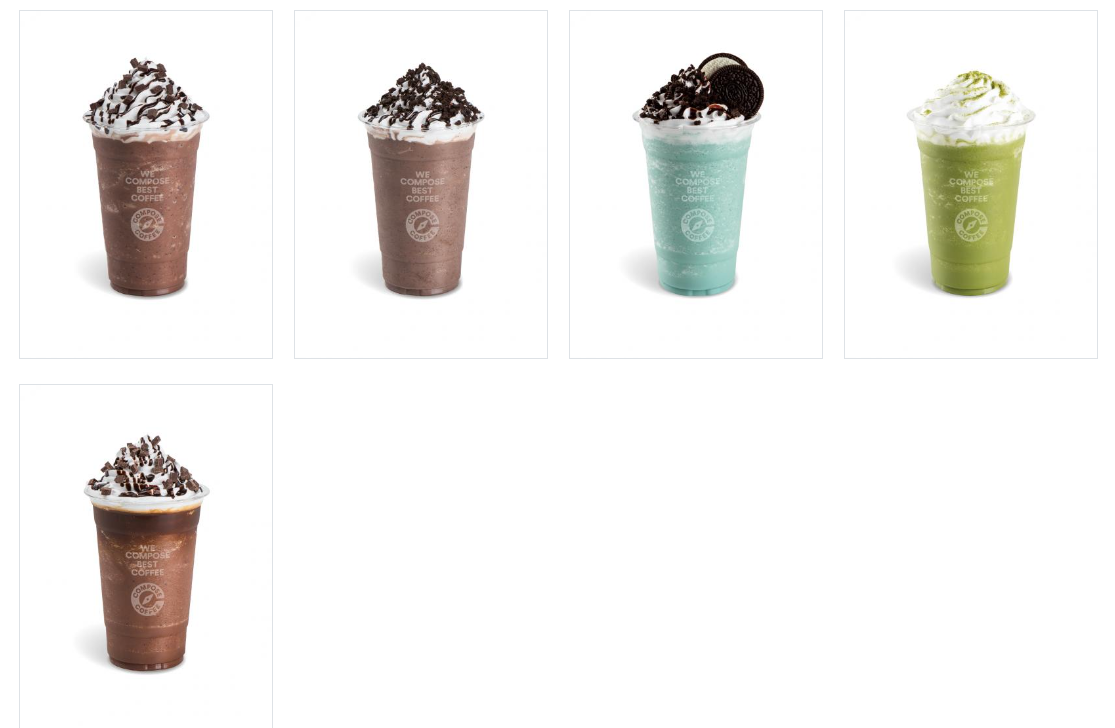 무더운 여름 컴포즈커피의 시원하고 달콤한 스무디와 프라페로 더위를 잊어보시면 좋습니다. 먼저 초콜릿 커피 프라페입니다.