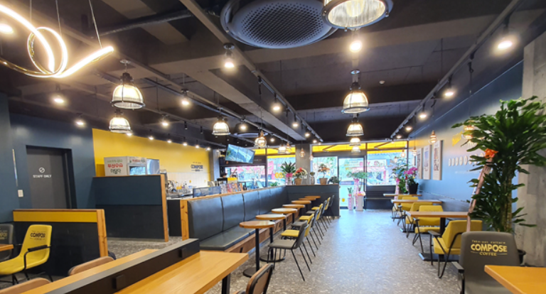 흥미롭게도 메가커피와 나란히 붙어있는 경우도 종종 볼 수 있는데, 컴포즈커피는 넓고 쾌적한 공간을, 메가커피는 아담하고 효율적인 공간을 선호하는 차이가 있습니다.