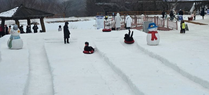 아이들은 물론 어른들도 함께 즐길 수 있는 눈썰매장은 겨울철 빼놓을 수 없는 체험 코스입니다. 특히 올해는 기존의 눈썰매뿐만 아니라 회전 눈썰매가 추가되어 색다른 재미를 더했습니다. 빠르게 내려가는 짜릿한 스릴을 즐기며 겨울의 매력을 한껏 느낄 수 있습니다.