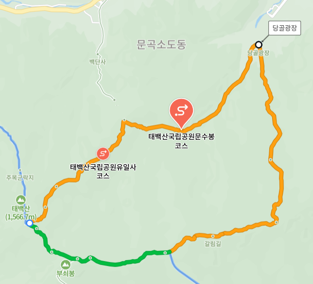 첫 번째로 소개할 코스는 태백산국립공원의 유일사 코스입니다. 태백산의 세 가지 코스 중 가장 짧은 코스는 유일사 코스입니다.