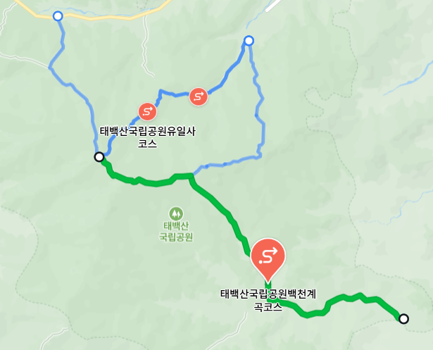 마지막으로 백천계곡 코스를 소개합니다. 이 코스는 현불사 주차장에서 시작해 태백산의 상징인 천제단까지 이어지며, 총 길이는 약 8.2km입니다.