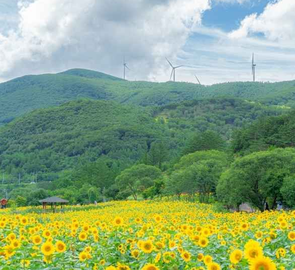 여름이면 약 2만~5만 평 부지에 100만 송이가 넘는 해바라기가 장관을 이루며, 국내 최초이자 최대의 해바라기 축제가 매년 7~8월 사이에 개최됩니다. 축제 기간에는 해바라기뿐 아니라 코스모스, 백일홍 등 다양한 꽃들도 어우러져 환상적인 풍경을 연출합니다.