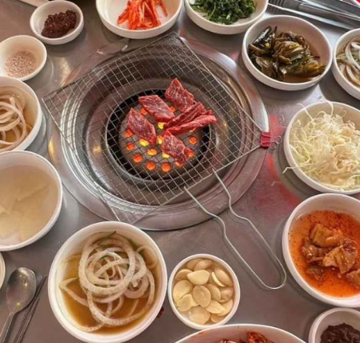 밑반찬 또한 깔끔하고 정갈하게 제공됩니다. 점심 메뉴로는 돌판 된장찌개와 뚝배기불고기를 추천합니다. 돌판 된장찌개는 고기를 구워 먹고 남은 기름에 된장찌개를 끓여 구수하고 진한 국물 맛이 일품입니다. 뚝배기불고기는 달달한 양념에 소고기와 야채를 볶아 든든하게 즐길 수 있는 메뉴입니다.