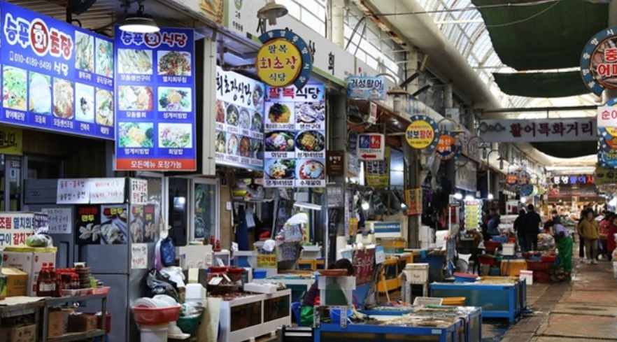활어특화거리, 선어특화거리, 반찬특화거리, 건어물거리, 꿀빵거리 등 구역별로 특화된 거리가 조성되어 있어 다양한 먹거리를 즐길 수 있습니다.