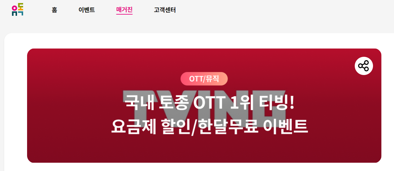 두번째 방법은 이벤트 기간을 이용하는 것입니다. 티빙은 다양한 기업들과 제휴를 맺어서 이벤트를 진행하며 이 기간을 잘 공략하시면 한달 무료로 쿠폰을 받으실수도 있습니다.