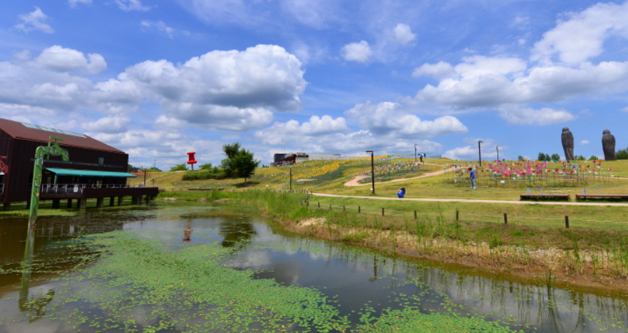 넓은 잔디밭과 바람의 언덕에는 수천 개의 형형색색 바람개비가 돌아가며 방문객들에게 희망의 메시지를 전달합니다.