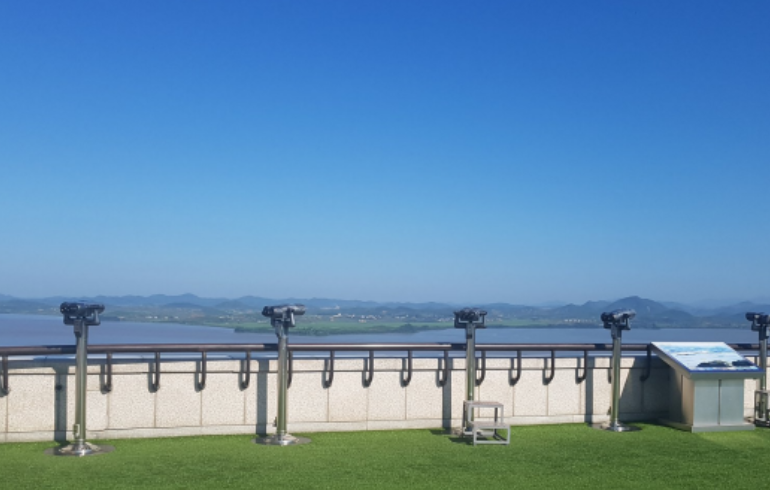 임진각 전망대에서는 비무장지대(DMZ)와 북녘 땅을 직접 바라볼 수 있으며, 날씨가 좋은 날에는 멀리 개성시까지도 보입니다.
