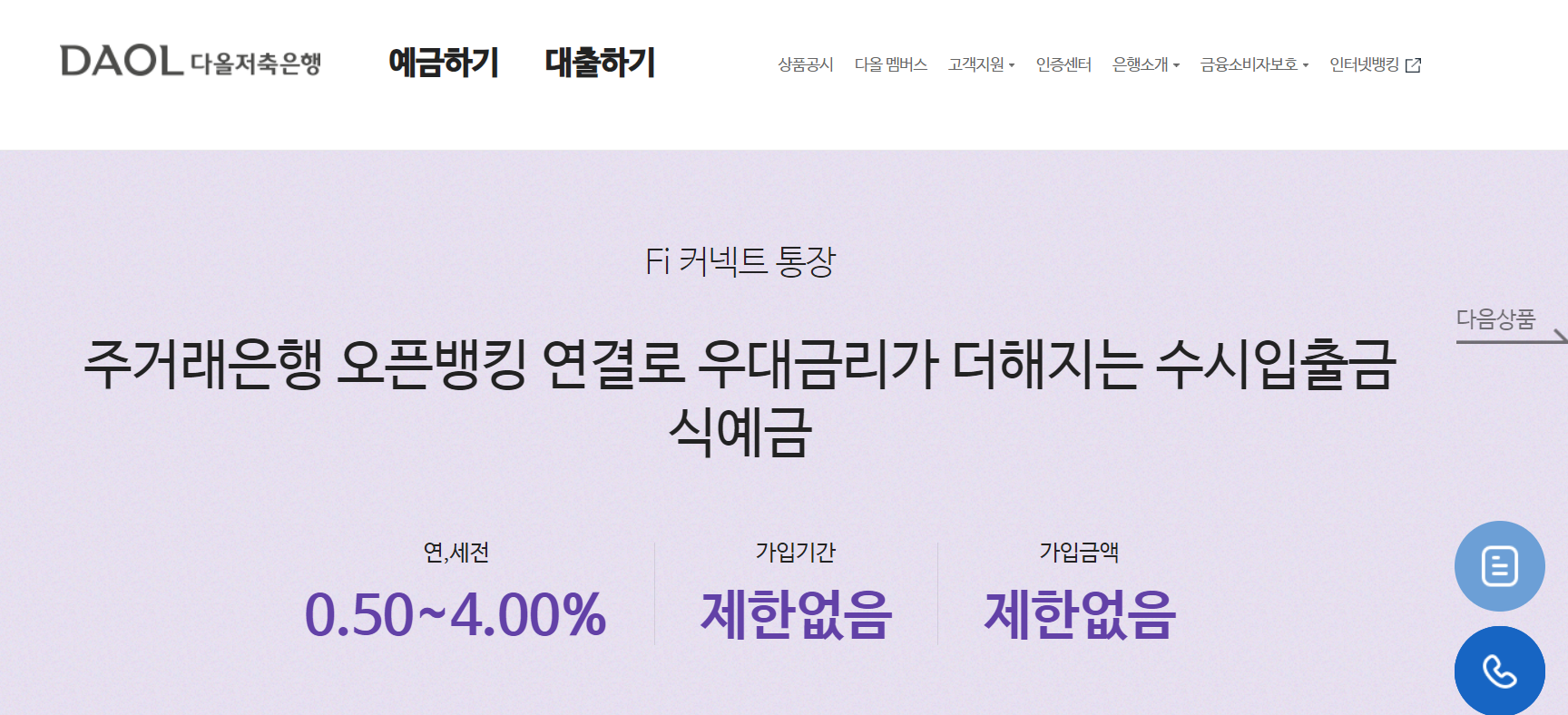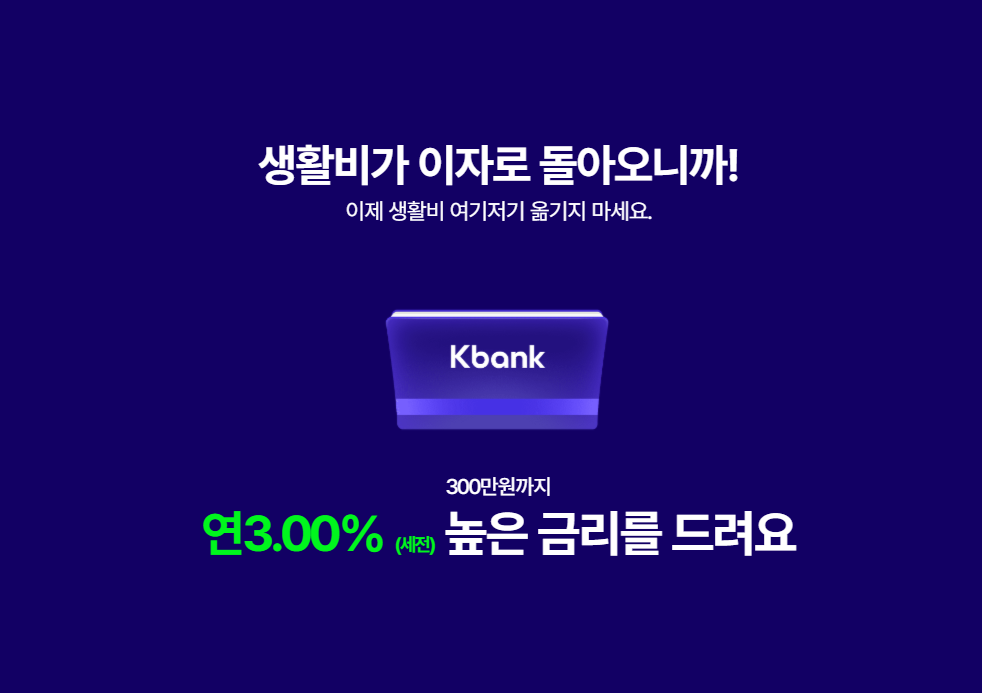 현시점 기준으로 본다면 제1금융권에서는 케이뱅크 생활통장이 3%대로서 금리가 가장 높은 편입니다. 재2금융권에서는 다올저축은행의 Fi커넥트 통장이 4%대로서 가장 높은 편입니다.