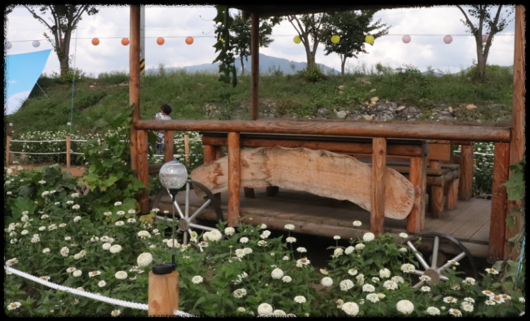 형형색색의 백일홍뿐만 아니라 코스모스, 해바라기, 넝쿨식물 등 다양한 꽃들로 가득한 아름다운 풍경을 선사합니다. 특히 평창강변을 따라 펼쳐진 백일홍 꽃밭은 놓칠 수 없는 장관입니다.