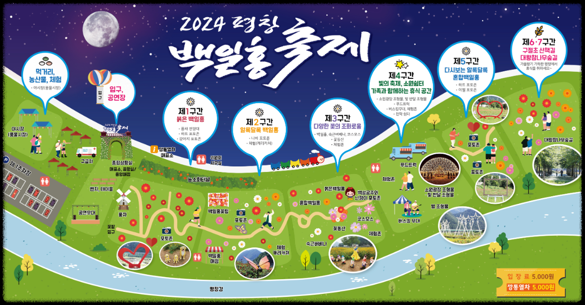축제 장소: 강원특별자치도 평창군 평창읍 제방길 81 평창백일홍축제장
