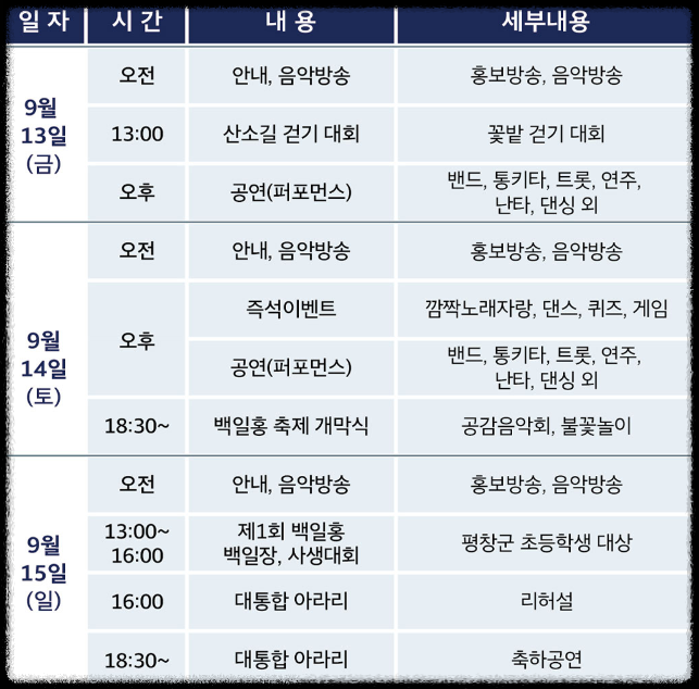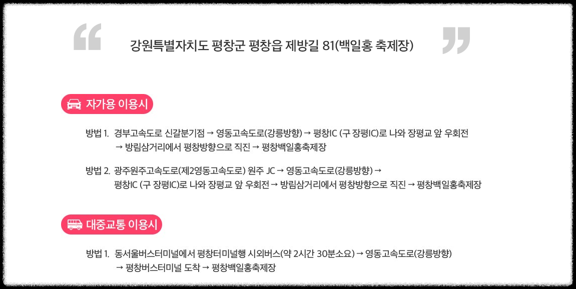 Tip: 축제 관련 자세한 정보는 평창백일홍축제 공식 홈페이지를 참고하세요!